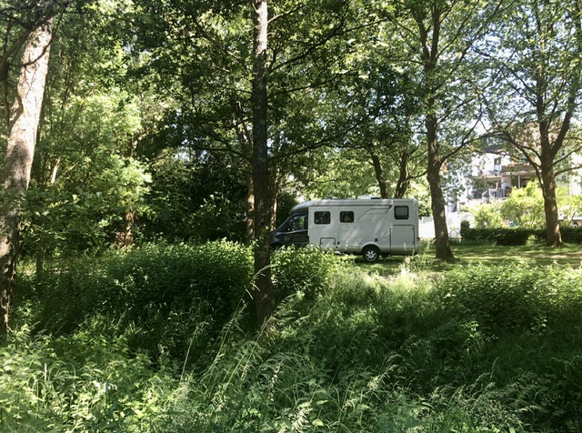 31. Mai, Mittwoch. Unsere Fahrt ging durch den Nationalpark Saar-Hunsrück über Wadern bis nach St. Ingbert. Der kleine, gebührenfreie Stellplatz für 3 Mobile liegt am Rande der Stadt in der Nähe eines Schwimmbades, unmittelbar am Rohrbach unter schattenspendenden Bäumen. Die Ent- und Versorgungsstation ist außer Betrieb. N 49° 14‘ 11“ E 7° 7‘ 56“