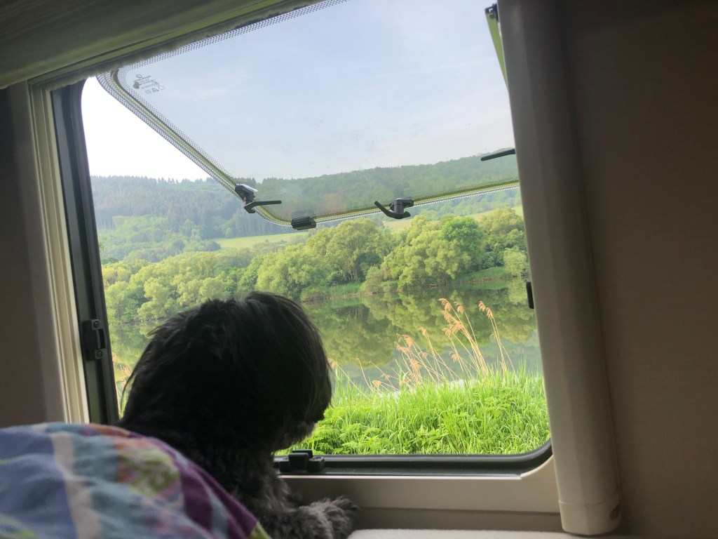 22. Mai, Montag. Der letzte Morgen in Kinheim. Mimmi ist bereits wach und genießt den Blick auf die Mosel bevor wir weiter fahren