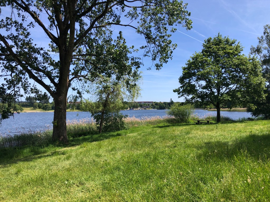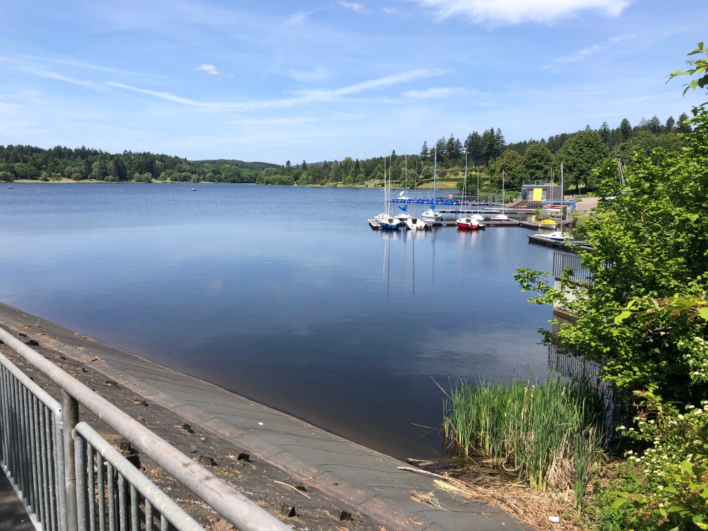 30. Mai, Dienstag. Zweiter und letzter Tag in Weiskirchen. Wir sind mit dem Motorroller rund 12 Kilometer nach Losheim an den See gefahren, er gehört zum Naturpark Saar-Hunsrück, und haben ihn auf einem schönen, etwas mehr als vier Kilometer langen Spazierweg umrundet.