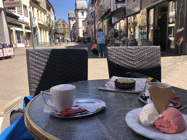 Vom Losheimer See ging es weiter nach Merzig, der Heimat des saarländischen Apfelweins. Wir haben allerdings am frühen Nachmittag Kaffee und Eis bevorzugt