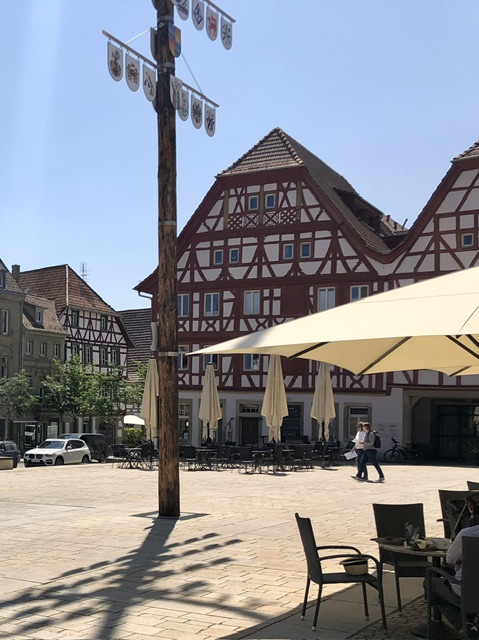 12. Juni, Montag. Nach sechs Tagen haben wir den Standort verändert und sind rund 85 Kilometer entlang der Deutschen Fachwerkstraße nach Herrenberg, nahe der östlichen Ausläufer des Schwarzwaldes gefahren. Der Stellplatz liegt nahe der Fachwerk reichen Altstadt und kostet 5€, hat V/E und Strom. N 48° 35‘ 25“ E 8° 52‘ 39“