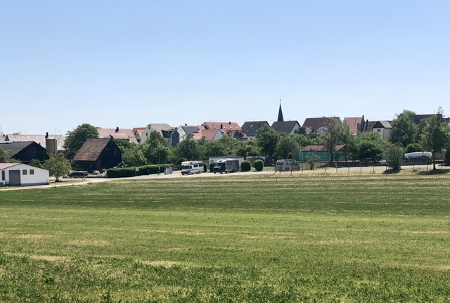 Unser heutiger Übernachtungsplatz in Neuhausen op Eck. Der gebührenfreie Stellplatz liegt am Ortsrand mit V/E und Strom. N 47° 58‘ 29“. E 8° 55‘ 25“. In der Nähe ein interessantes Museumsdorf mit 25 historischen Gebäuden der hiesigen ländlichen Region und launigen Führungen