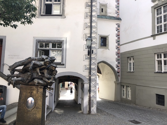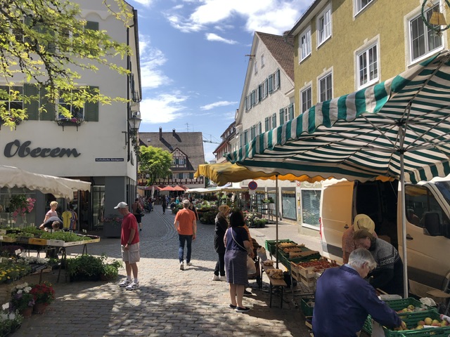 Während der langen Wartezeit waren wir über den Markt in Leutkirch gebummelt und hatten eine Kleinigkeit in einem nahen Brauhaus gegessen. Da wir mit dem Motorroller unterwegs waren, musste ich mich zwar auf alkoholfreies hiesiges Bier beschränken, war aber überrascht, wie gut es schmeckte