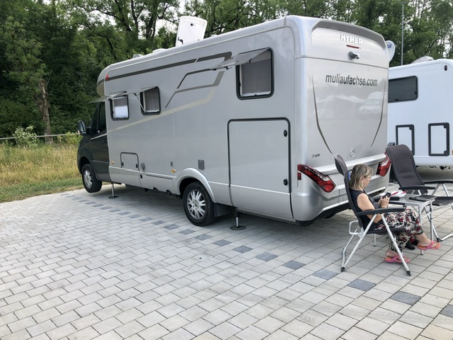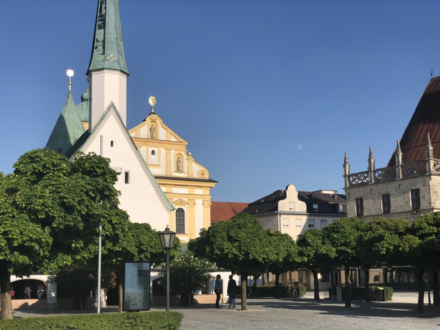 Nachdem wir zwei „Pro Mobil“ Stellplätze in Werfengweng und in Siegsdorf vergeblich angefahren hatten (der erste war ausschließlich für PKW‘s und der zweite eine öde Schotterfläche), stehen wir heute Nacht auf dem kostenfreien Stellplatz in Altötting. V/E vorhanden und es ist schattig unter Bäumen