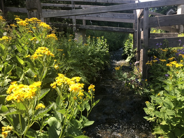 Mimmi, mit ihrem schwarzen, die Hitze speichernden Fell, benötigt nun doch eine Abkühlung im klaren, kalten Gebirgsbach