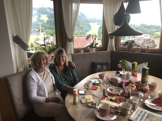 28. Juni, Mittwoch. Ein tolles Frühstück bei Sylvia. Kaisersemmeln, Tiroler Schinken, Tiroler Käse und interessante Gespräche