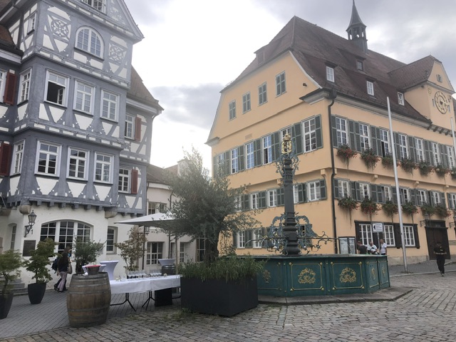 22. September, Freitag. Wir übernachten in Riedlingen, einem kleinen Fachwerkstädtchen an der Donau. Der Stellplatz ist gebührenfrei, hat Ver/ und Entsorgung und für acht Plätze zumindest drei Stromanschlüsse.