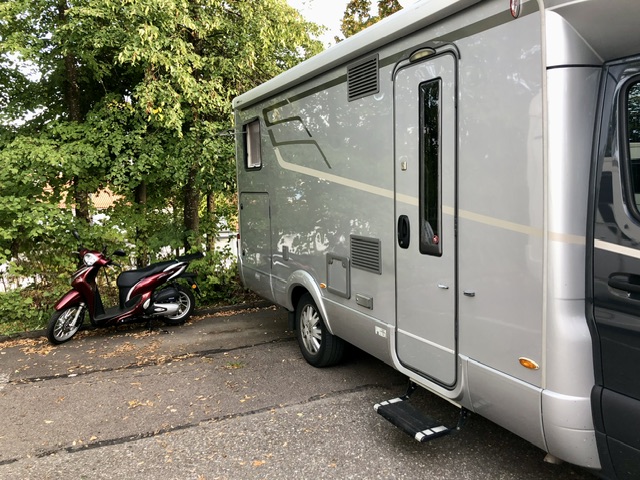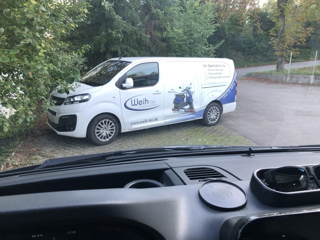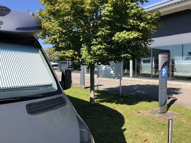 27. September, Mittwoch. Bis zum späten Nachmittag sind wir auf dem Stellplatz bei Carthago geblieben und sind nun wenige Kilometer weiter bei der Firma Weih-tec in Aulendorf angekommen. Wir werden auf dem Firmengelände übernachten, denn morgen früh um 8:00 Uhr beginnt bereits der Einbau des Motorrollersystems