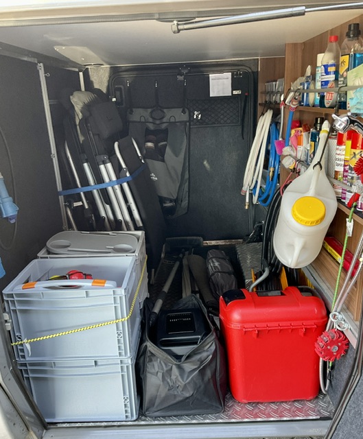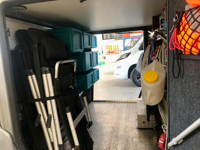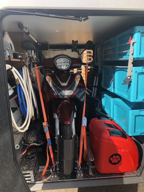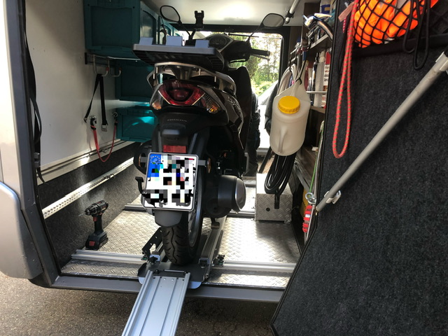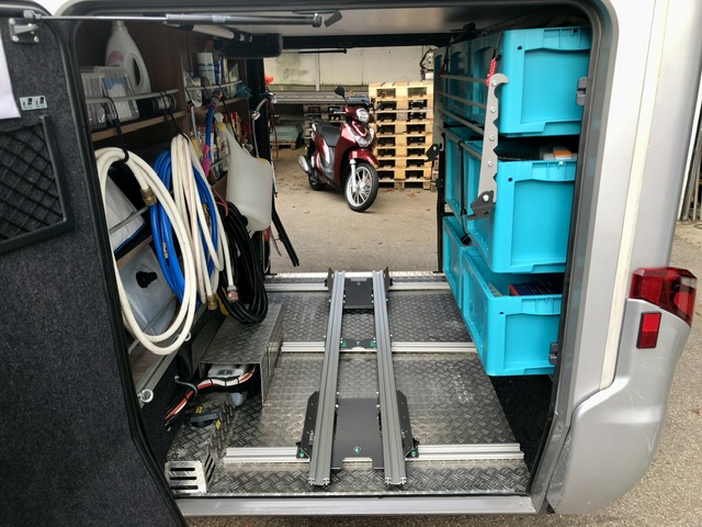 Die Boxen sind befestigt und obwohl sie deutlich mehr Stauraum bieten als das vorherige Auszugssystem, steht nun trotzdem mehr Platz für ein Motorroller Trägersystem zur Verfügung. Dieses wird am 28. September von der Firma Weih-tec in Aulendorf eingebaut werden
