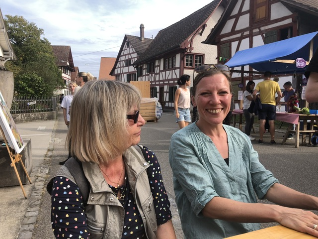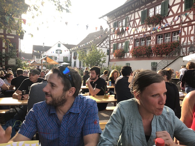 30. September, Samstag. Wir stehen noch auf dem Stellplatz in Lottstätten und sind am Nachmittag mit dem Motorroller über die Grenze nach Marthalen gefahren. Unsere Freunde aus der Schweiz haben uns eingeladen, mit Ihnen das dortige Dorffest zu besuchen