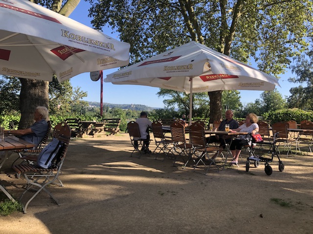 Der Abend beschließen wir in einem schönen Biergarten Rheinaufwärts kurz hinter Koblenz an der Koblenzer (Königsbacher) Brauerei. Die Nacht verbringen wir auf dem großen Parkplatz des Biergartens. N 50° 19‘ 26“ E 7° 35‘ 11“