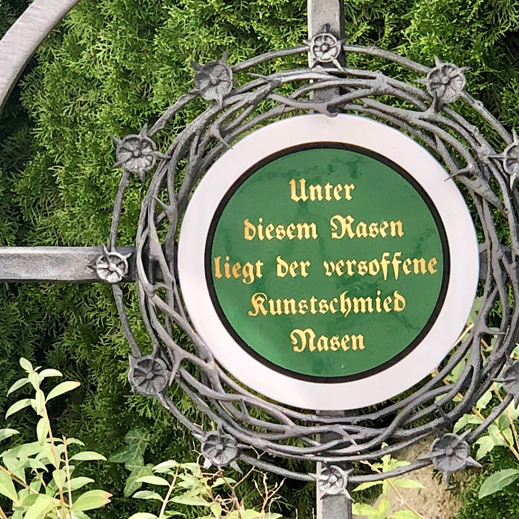 Grabkreuze an der Brauerei, mit einem Augenzwinkern zu lesen