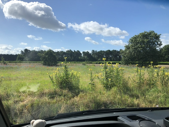 6. Juli, Samstag. Unsere Fahrt mutet planlos an, ein Zickzackkurs. Wir fahren wieder zurück nach Holland. Ursprünglich wollten wir über das Ruhrgebiet zurück fahren, haben aber unseren Plan geändert, als wir von einem besonders schön gelegenen Stellplatz in Lottum erfuhren. Dieser herrliche Platz „IndeVerte“ ist abseits gelegen, sehr ruhig und von Blumenwiesen umgeben. N 51° 27‘ 5“ E 6° 7‘ 53“