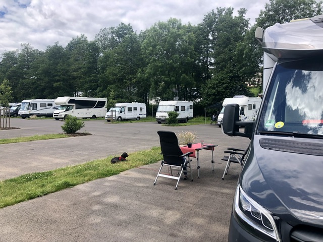 8. Juli, Montag. Wir haben unsere letzte Station auf dieser Reise erreicht und stehen bis morgen auf dem Wohnmobilstellplatz in Prüm. Der Platz ist schön angelegt, unmittelbar an der gleichnamigen Prüm gelegen, hat V/E und Strom und kostet 10€.