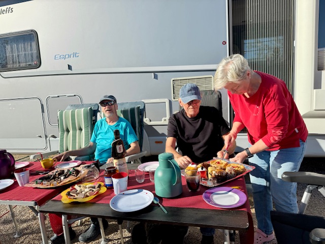 Das gute Essen lässt sich kaum jemand entgehen. Und wir sind nun auch fast komplett. Heute sind Inge und Wolfgang aus dem hohen Norden angekommen, nun fehlen nicht mehr viele. Sukzessive wird der Rest der Gruppe in den kommenden Wochen eintreffen