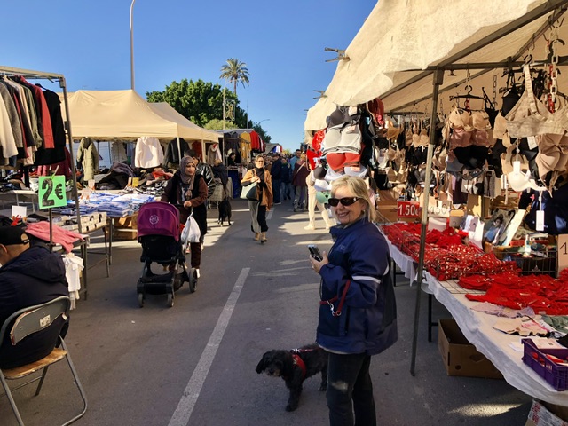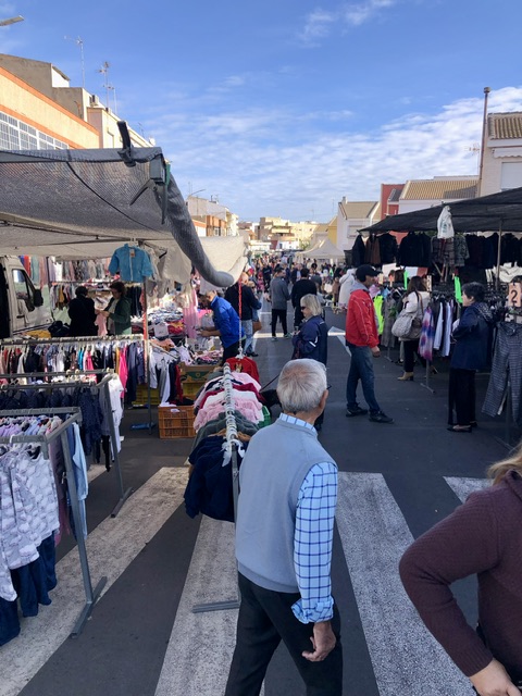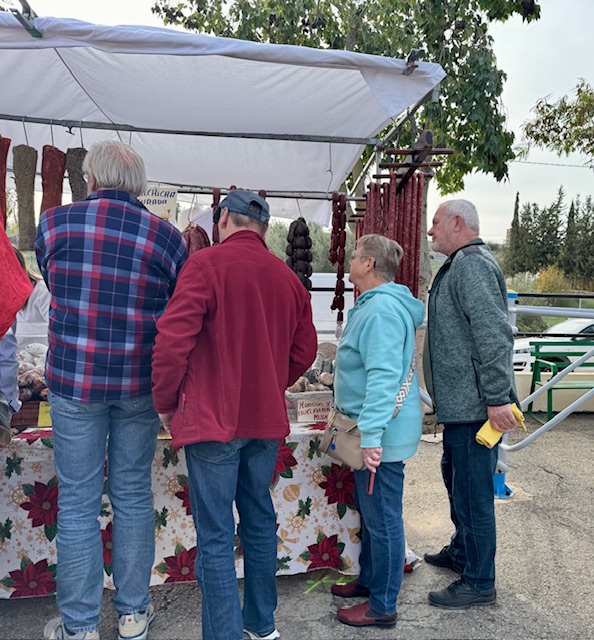 14. Dezember, Samstag. Zehn Minuten Fußläufig vom Stellplatz entfernt, am Museum „Museo Etnográfico del Campo de Cartagena“ ist heute Markt. Wir haben uns alle erst einmal an einem Stand angestellt, zu dem uns verlockende Gerüche von Mettwürsten, Salamis, Schinken und geräucherte Specksaiten hingezogen haben