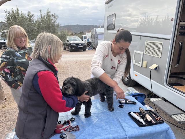 26. Dezember, Donnerstag. Am zweiten Weihnachtsfeiertag gab es etwas besonderes für unsere Vierbeiner. Bianca, eine Hundefrisöse aus Cartagena hat sich unseren Fellnasen angenommen und Lissy (Speedy Gonzales) und Mimmi (Langhaar Clochard) in zwei vorzeigbare elegante Damen verwandelt