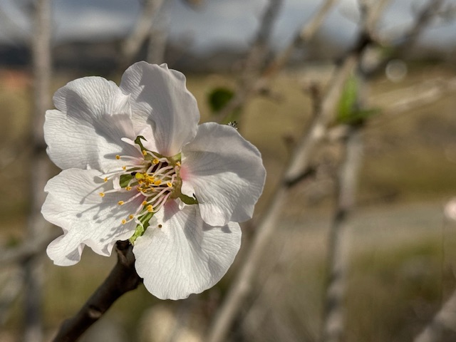 29. Dezember, Sonntag. Und weiter geht’s mit den Mandelbäumen. Die Mandelblüten erblühen normalerweise erst Ende Januar, Anfang Februar. Doch in diesem Jahr sind jetzt bereits die ersten Blüten in hellem Weiß, blassem Gelb und zartem Rosa zu entdecken