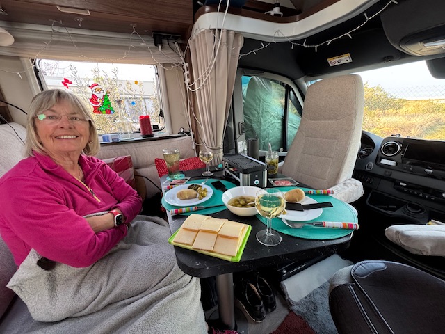 Gutes Essen in netter Gesellschaft. Kann man Weihnachten eigentlich noch besser feiern? Die Chefin des Stellplatzes, Maria, hat wieder alles wunderbar organisiert und zu guter Letzt noch einen heißen Tanz im Weihnachtskostüm geboten