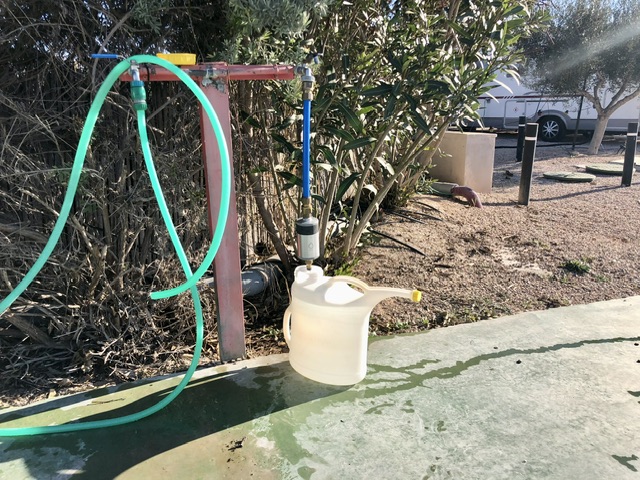 15. Dezember, Sonntag. Der tägliche Weg zur Wasserzapfstelle. Etwa 20 Liter verbrauchen wir pro Tag. Dank des Filters gewinnen wir gutes Trinkwasser. Er ist in der Lage, Chlor, organische Schadstoffe, medikamentöse Rückstände, leichte Kohlenwasserstoffe, Lösungsmittel, Pestizide, Aromen und feine Partikel (Rost, Kalkflocken, Sand) zu filtern. In den südlichen Ländern ist dieses System sehr hilfreich