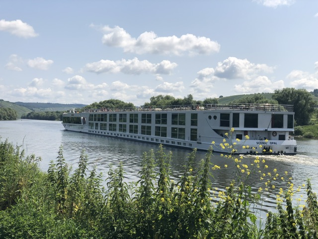 16. Juni, Montag. Es ist ein idyllischer Platz auf dem wir stehen und zu sehen gibt es immer etwas. Hotelschiffe, Frachter und Sportboote auf dem Fluss, die gemächlich vorbeiziehen