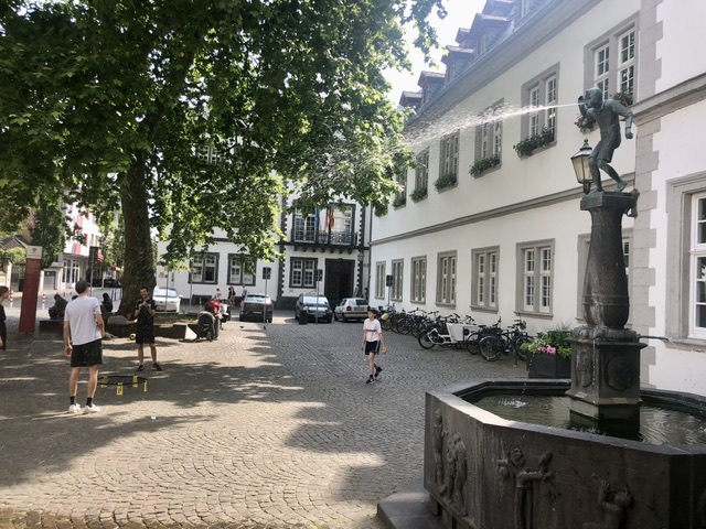 Im nahen Rathaushof steht der Schängelbrunnen, umringt von den Renaissance und Barockbauten des Jesuitenensembles. Schängel bezeichnet die deutsch-französischen Kinder, die während der Koblenzer Zugehörigkeit zu Frankreich im 18. Jahrhundert geboren wurden. Die Koblenzer Mundart formte aus dem damals geläufigen Namen Jean schließlich Schäng und die Verniedlichung Schängel