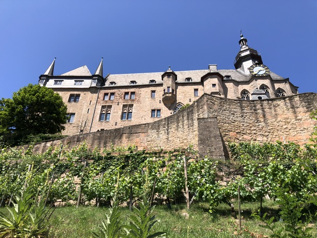 So an Leib und Seele gestärkt, machten wir uns trotz gleißender Sonne an den Aufstieg zu der früheren Burg und heutigem Landgrafenschloss. Majestätisch thront das Schloss über der Stadt und gibt einen wunderbaren Ausblick auf dieselbe frei. Von einer Wehranlage im 11. Jahrhundert entwickelte es sich zu einer beeindruckenden Residenz