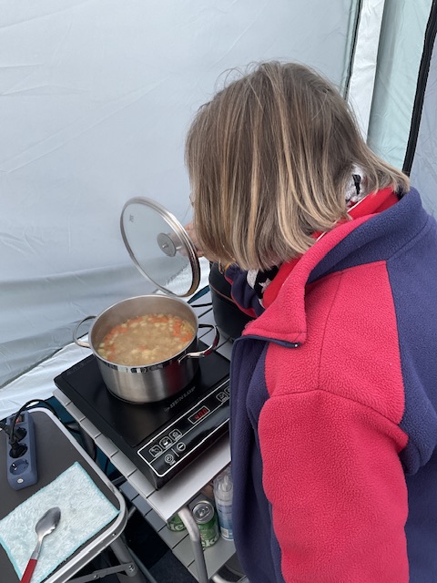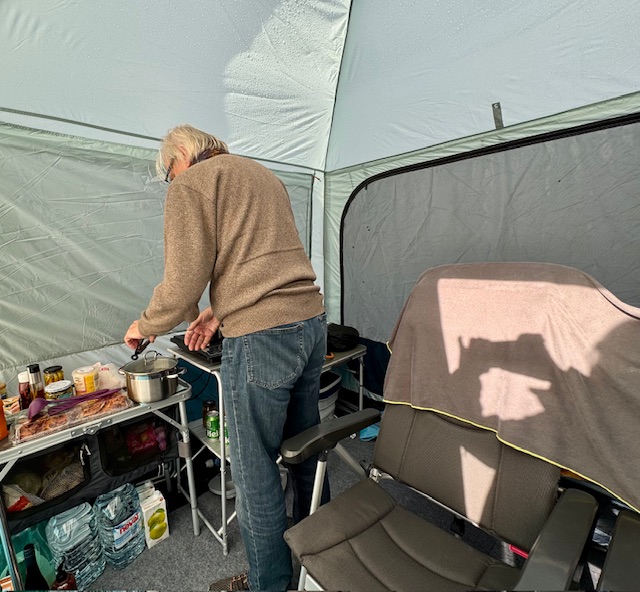 während ich die Kartoffelecken im Küchenzelt im Airfreyer schön kross und gut gewürzt zubereitet habe