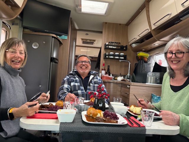 Inge und Wolfgang haben uns am Nachmittag zum Adventskaffee eingeladen. Bei 21 Grad haben wir nicht nur Kaffee und Kuchen genossen, sondern zusammen auch viel Spaß gehabt. Am frühen Abend meldeten sich Isabell und Erik, dass sie es auf dem Weg zum Los Olivos Camperpark bereits bis Lyon geschafft haben