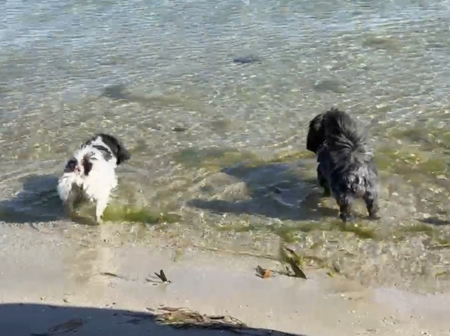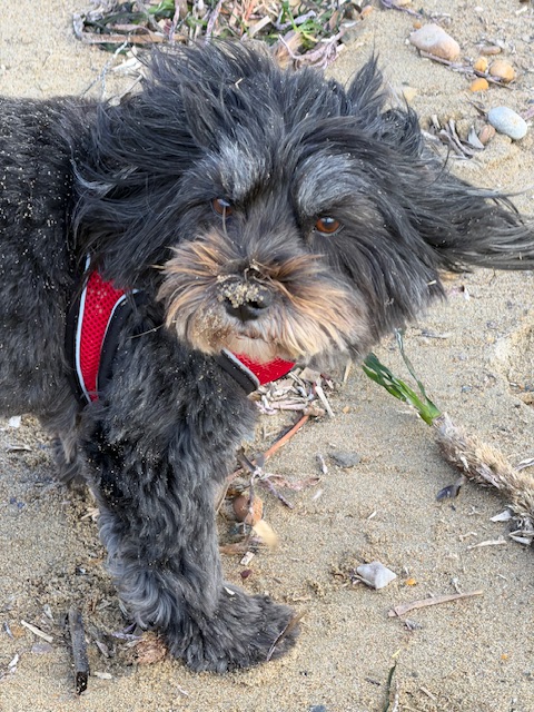 Mimmi hat sich in der Zeit gegenüber des Felsmassivs am Sandstrand vergnügt und ihre Schnauze in jedes noch so kleine Loch gebohrt. Vergeblich erhoffte sie allerdings dort etwas leckeres zu finden
