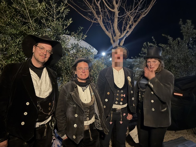 Am Abend stand ein ungewöhnlicher Besuch vor unserer Wohnmobiltüre. Vier Zimmerleute auf der Walz, von Deutschland kommend auf ihren Weg durch Spanien. In der Nähe hatten sie ein Nachtlager gefunden und baten um ein paar Lebensmittel, die wir und unsere Nachbarn ihnen gerne gegeben haben. Schön, dass es das noch gibt