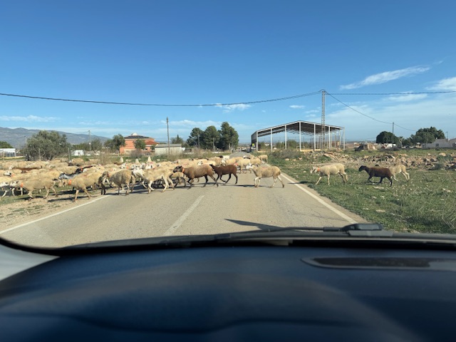 2. Februar, Montag. Vormittags frischte der Wind leider wieder auf und wir haben uns entschlossen, eine kleine Rundfahrt zu unternehmen. Zunächst ging es Richtung La Pinilla und in einem großen Bogen über Lobosillo nach Cartagena zurück. Lediglich gebremst von einer großen Schafherde, die vor uns, sehr diszipliniert die Straße überquerte