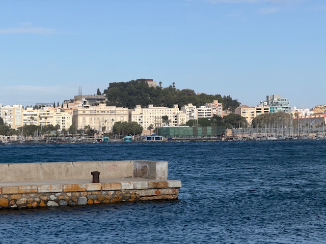 Von diesem Platz aus sieht man von der Wasserseite auf die Stadt Crtagena und das Castillo de la Conceptión