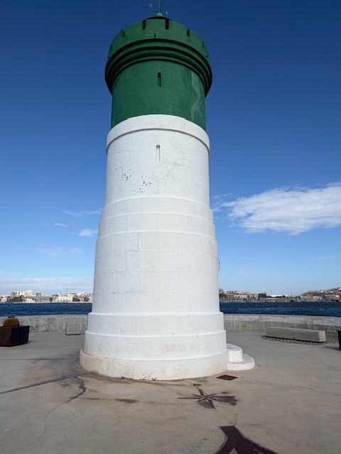 In Cartagena habe wir den großen Industriehafen umfahren und sind, die Muelle de la Curra entlang fahrend auf einer schmalen Landzunge gelandet, an deren Ende dieser Leuchtturm den Schiffen eine sichere Einfahrt bietet
