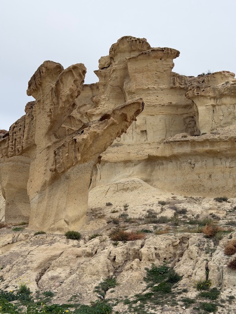 3. Februar, Dienstag. Vormittags führte uns unser Weg nach Mazarrón und weiter an der Küste entlang bis zu dem bizarr anzusehenden Felsmassiv „Las Gredas de Bolnuevo“. Wir waren nicht das erste Mal hier und jedes Mal ist der Schattenwurf anders und es ergibt ein neues Bild. N 37° 33‘ 50“ W 1° 18‘ 44“