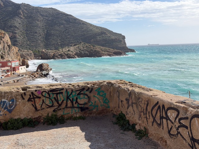 10. Februar, Dienstag. Endlich zeigt sich das Wetter so wie im Februar der vergangenen Jahren. Blauer Himmel, kaum Wind und 23 Grad im Schatten. Da im südlichen Teil von Andalusien und in Portugal noch immer Unwetter drohen, sind viele Camper von dort zurückgekommen und hier gestrandet. Der Stellplatz ist bis auf den letzten Platz besetzt. Wir haben eine kleine Tour durch die Außenbezirke von Cartagena unternommen und dabei viele architektonisch interessante Gebäude entdeckt, von denen allerdings einige in keinem guten baulichen Zustand sind