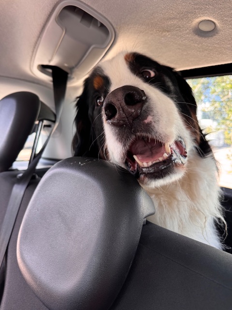 Natürlich waren unsere Hunde dabei. Die kleine Mimmi und der „nur unwesentlich größere“ Curtis. Während Mimmi auf dem Schoß Platz nahm, fand Curtis sein temporäres Zuhause im Kofferraum. Beide haben auf ihren unterschiedlichen Plätzen die Fahrt problemlos überstanden