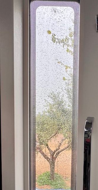 2. März, Montag. Das unterscheidet den Aufenthalt in Spanien nicht von Zuhaue. Die Fenster müssen ab und an geputzt werden, damit die Aussicht nicht vor lauter Mücken und Staub getrübt ist. Und da das Wetter, wie man dem Bild entnehmen kann, kaum zu anderen Aktivitäten einlädt, ist heute eine gute Gelegenheit dafür