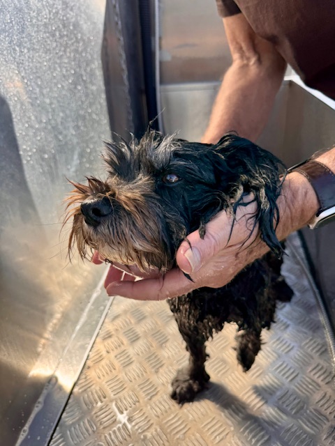 Tagebuch einer Hündin, Eintrag 14:20 Uhr: Verrat auf ganzer Linie. Eigentlich dachte ich, wir fahren zum Park. Stattdessen hielt das Auto vor diesem seltsamen Kasten, der nach Shampoo und feuchtem Handtuch riecht. Bevor ich „Wuff“ sagen konnte, stand ich in der Box. Plötzlich kam warmes Wasser von überall. Ich habe versucht, ganz leidend zu gucken – mein Spezialblick, der normalerweise Leckerlis regnet. Hat diesmal nicht funktioniert. Herrchen hat mich eingeseift, bis ich aussah wie ein explodiertes Marshmallow. Wo ist mein hart erarbeiteter Duft nach Erde und totem Regenwurm hin? Alles weg. Zum Schluss kam dieses Wind Ding. Jetzt bin ich wieder trocken und rieche wie eine Blumenwiese. Ziemlich peinlich für eine Hündin meines Formats, wenn man mich fragt. Aber okay, alle sagen, ich sei jetzt „sooo flauschig“. Ich warte nur auf die nächste Pfütze – die Rache wird schlammig sein!