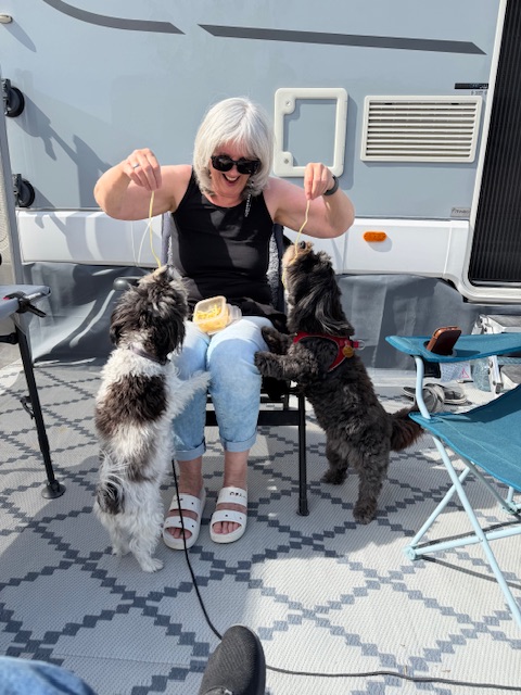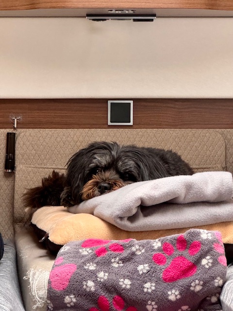 14. März, Samstag. Der Nervenkrieg geht weiter. Nach dem Waschprogramm gestern, folgt heute der Friseurbesuch. Die kleine Luzie machte den Anfang. Sie stand da wie eine Diva, während die Schere klapperte. Jetzt ist sie so perfekt gestutzt, dass sie vermutlich gar nicht mehr läuft, sondern über den Bürgersteig schweben wird. Sie sieht jetzt so edel aus, dass die Katze Olivia hier auf dem Stellplatz bei ihrem Anblick erst mal höflich grüßen wird, statt zu fauchen