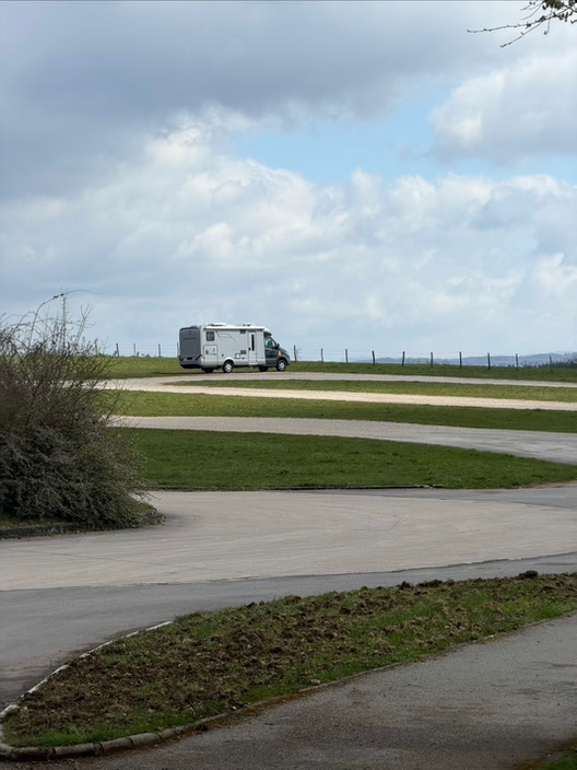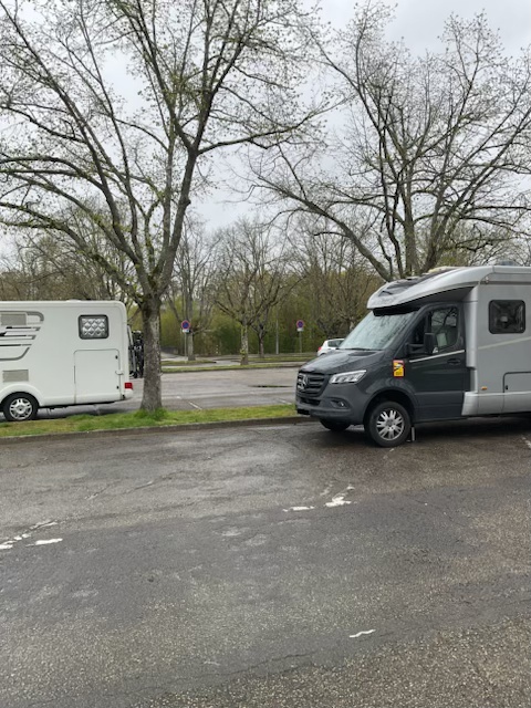 30. März, Montag. Heute führte uns unsere Tour rund 85 Kilometer weiter, bis auf den Stellplatz Aire de Camping-Car I‘Epide in Belfort. Der Platz hat eigentlich nur 8 Stellplätze, aber auf der großen Fläche stehen heute mehr als 30 Fahrzeuge, teilweise mit Hänger. Der Stellplatz hat V/E, die 8 regulären Plätze haben Stromversorgung und alles ist kostenfrei