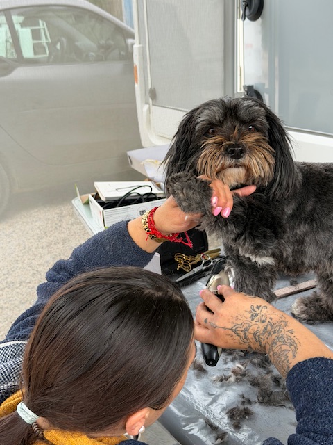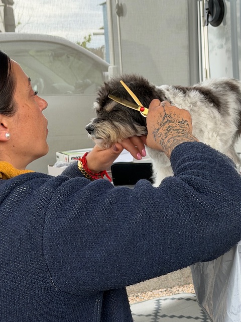 Danach war Mimmi dran. Durch das dicke Fell ist ein guter Haarschnitt bei ihr wie eine architektonische Meisterleistung. Sie sieht jetzt nicht mehr aus wie ein wandelnder Flokati, sondern wirkt nun so grazil, dass sie glatt als Luzies Bodyguard im Designer-Anzug durchgehen könnte. Im Moment stolziert sie gerade durch das Wohnmobil, als hätte sie die Wahl zur „Miss Dog-Universe“ gewonnen. Beide, Luzie und Mimmi signalisieren uns nun allerdings ziemlich eindeutig: jetzt reicht es mit der professionellen Aufbereitung und wir wollen in unseren normalen Hundealltag zurückkehren
