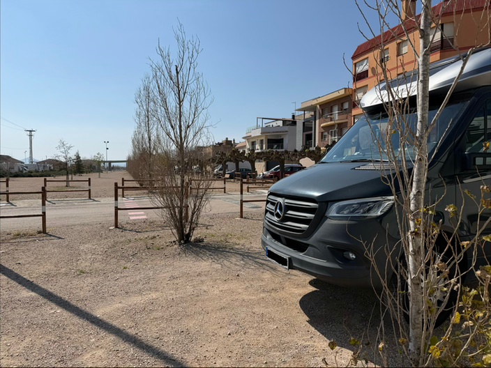 22. März, Sonntag. Wir sind nach 140 Kilometer Fahrt auf der Autobahn gegen Mittag auf dem Stellplatz Àrea d’Autocaravanes in L‘Aldea angekommen. Der Platz für 35 Mobile, auch mit Hänger geeignet, ist gebührenfrei und hat V/E.