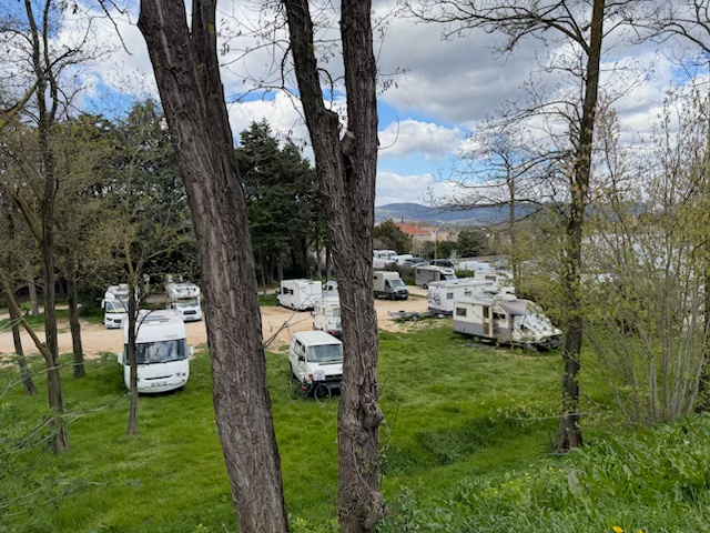 Unser Tagesziel ist der Stellplatz Ville-sous-Anjou im gleichnamigen Ort. Er liegt etwa auf halben Weg zwischen Valence und Lyon, im Département Isère in der Region Auvergne-Rhône-Alpes. Sowohl der Platz, als auch die V/E und der Strombezug sind kostenlos.